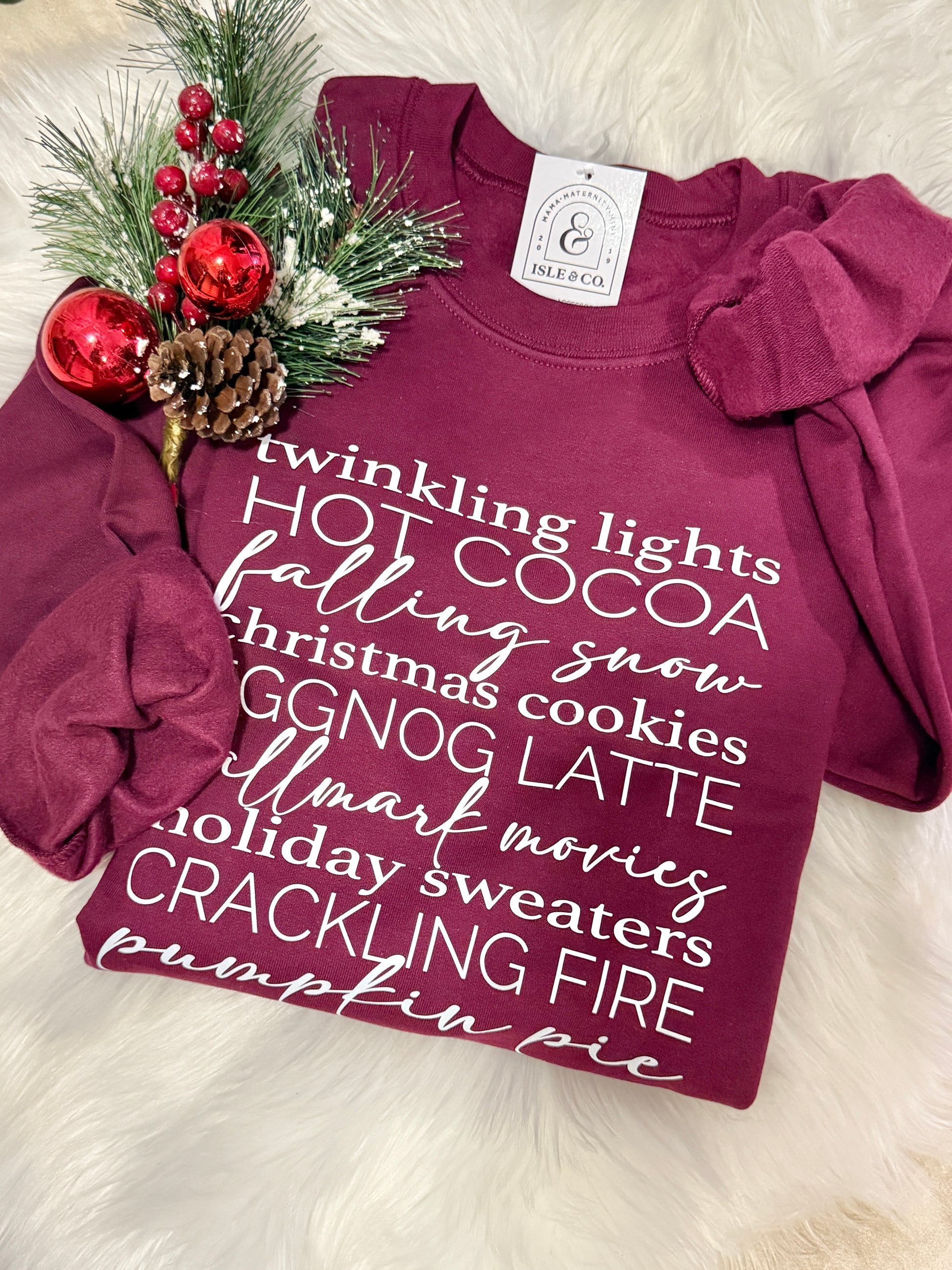 Christmas Words Maroon Classic Crewneck