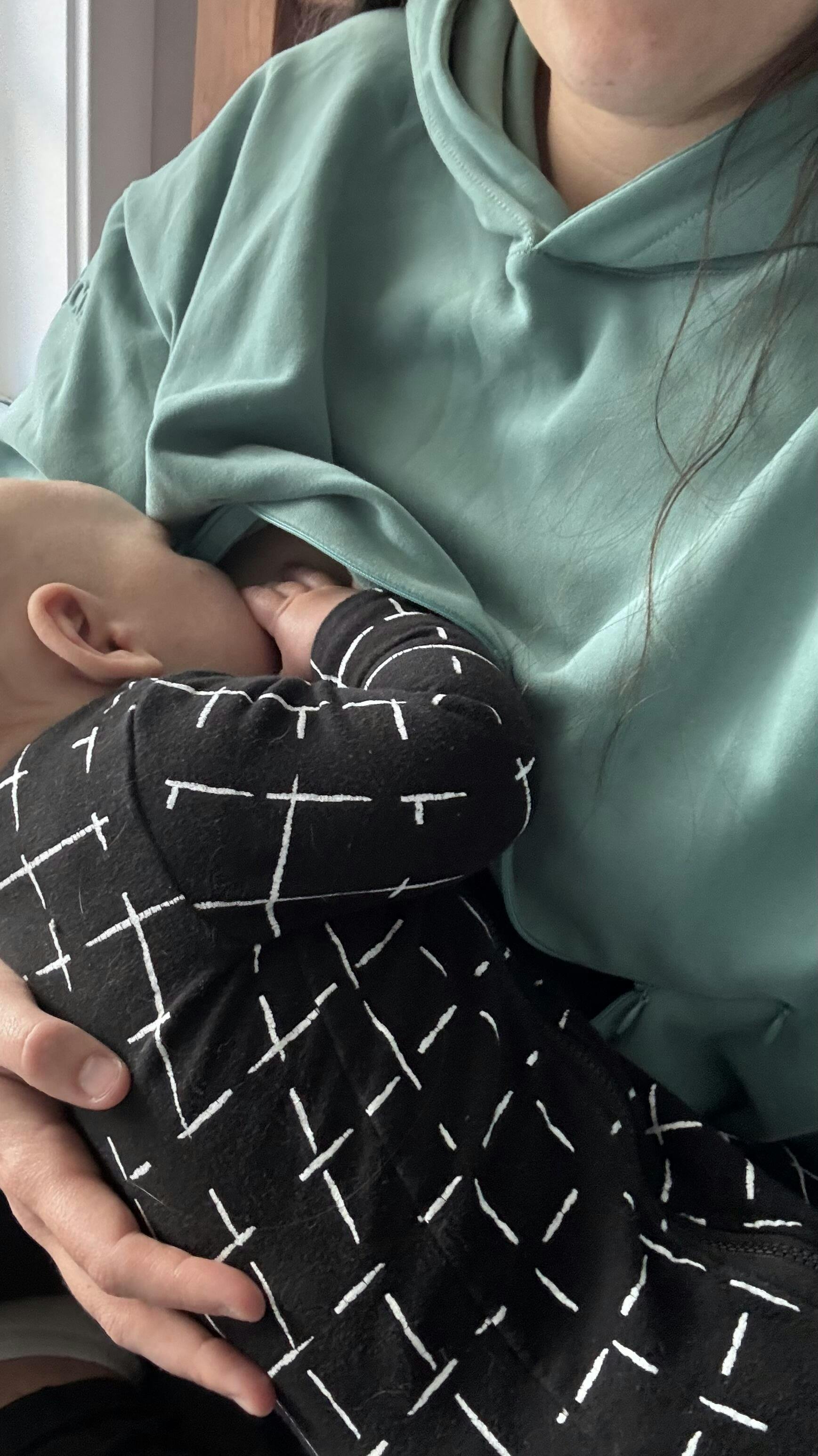 Wrapped in a buttery soft 95% cotton + 5% spandex blend, it features a genius 2-way invisible zipper that sits just below the bust for discreet nursing and pumping access. The fleece lined construction keeps you warm, while the drawstring-free design means zero safety worries for baby. Generous stretch and an oversized silhouette work seamlessly from pregnancy through postpartum, while fabric cuffs and a waistband hug you in all the right ways. Stash your phone, keys, and sanity in the oversized kangaroo pocket. Subtle embossed sleeve branding, ultra-soft satin tags, and lined covered zips?
