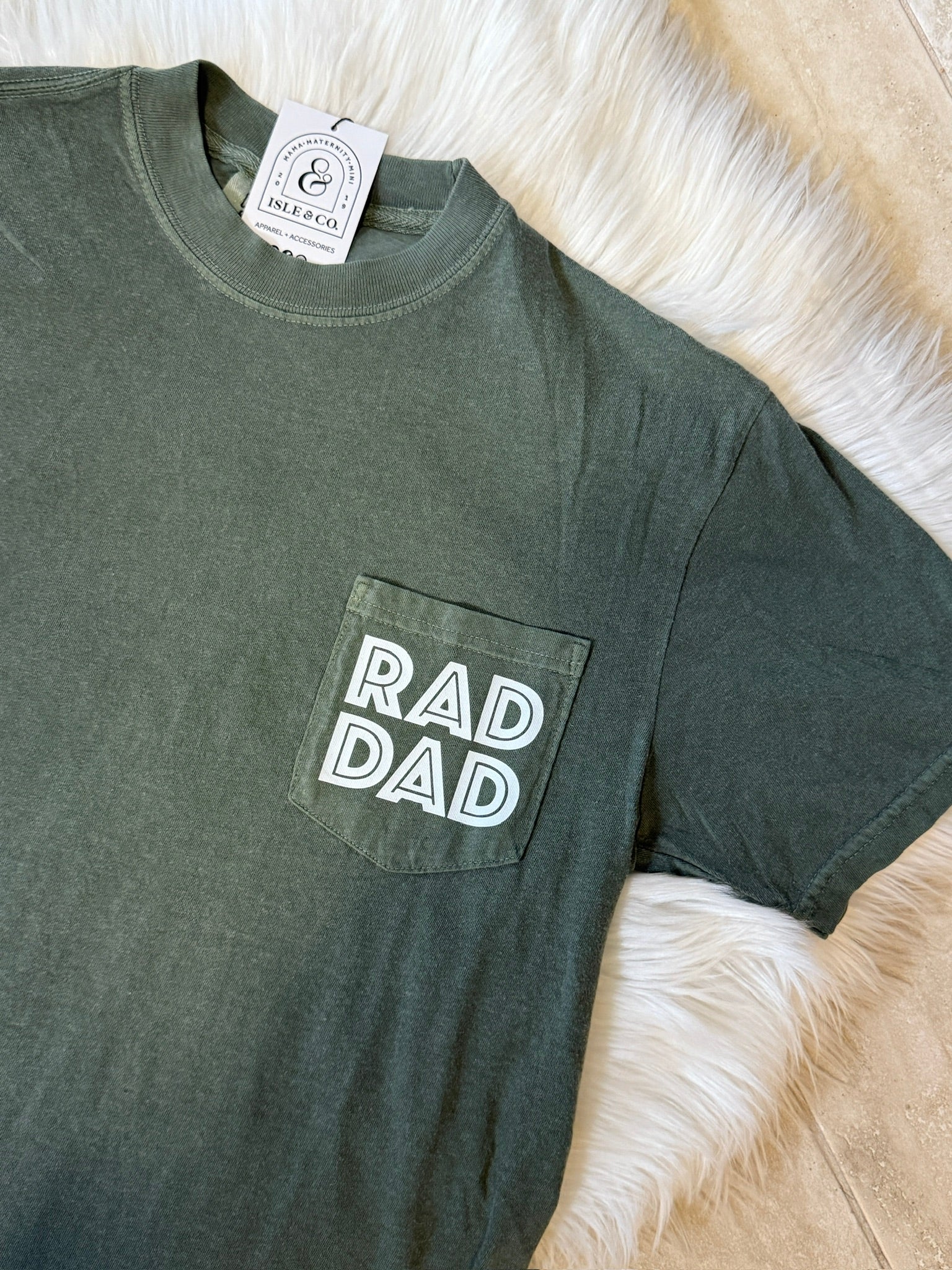 For the dad who’s effortlessly cool — meet the Rad Dad Vintage Wash Tee. Made in a soft, lived-in moss green with a clean pocket print, this tee blends everyday comfort with laid-back style. Whether he’s running errands, chasing littles, or relaxing on the weekend, this tee is an easy go-to for dads who want something casual, lightweight, and just plain rad.